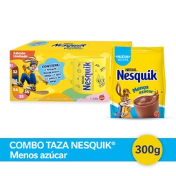 Cacao en Polvo Nesquik Menos Azúcar Combo Taza 300 Grs