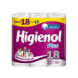 Papel Higiénico Doble Hoja Higienol Plus 30 mts 18 uni