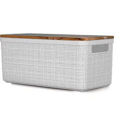 Cesta Nitron Yute Grande Blanca con Tapa Teca