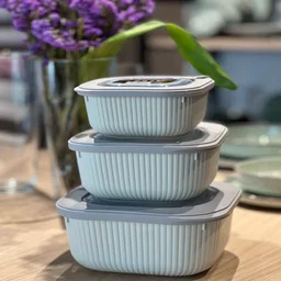 Set x 3 Contenedores Recipientes Plasticos Taper Aston Cuadrado Beige