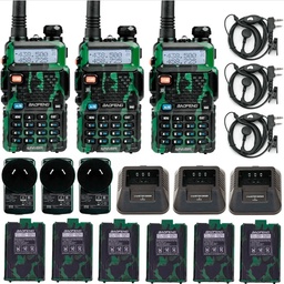 Handy Baofeng Uv-5r 8W Camuflado Bi-banda Kit x3 Hasta 12Km + 6 Baterías y 3 Manos Libres