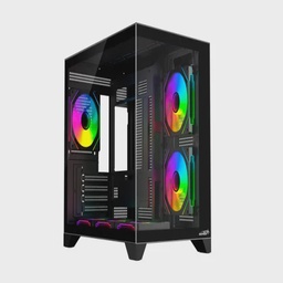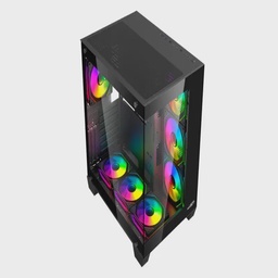 Gabinete Gamer Negro Paneles de Vidrio 4 Coolers Frgb S/fuente Sentey H12 6120-Sf