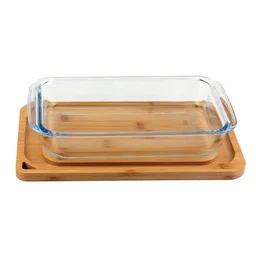 Fuente Vidrio Tapa Bambu 37X22,9x6cm