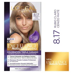 Kit Tintura Excellence Matizador Supreme Tono 8.17 Rubio Claro Cenizo Mate